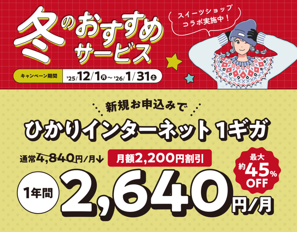 通常月額4,840円(ひかり得割適用時)⇒1年間 月額2,640円に!