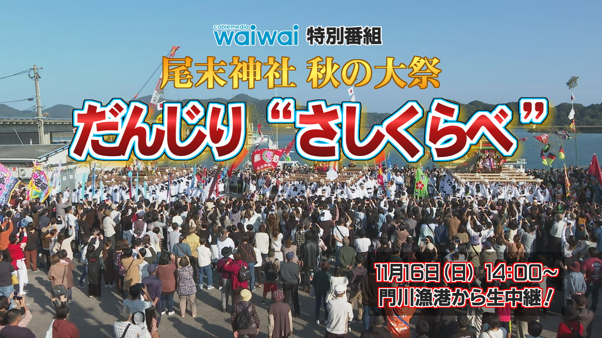 ワイワイチャンネルでは、11月16日(日)に開催される、漁の安全と大漁を祈願する門川の秋の伝統行事。尾末神社 秋の大祭 だんじり「さしくらべ」を生中継します。